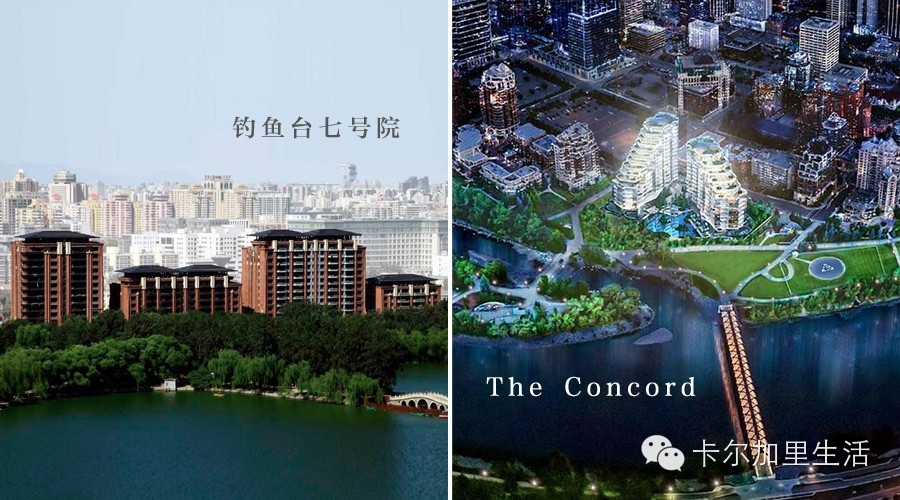 北京,钓鱼台七号院,曾经因为定价30万人民币每平被政府限价,玉渊潭旁边!The Concord,卡尔加里最贵的高层豪宅,Bow River旁。为什么豪宅都喜欢建在水系旁呢,除了景致外,不外乎人类自诞生以来对水的依赖情节。