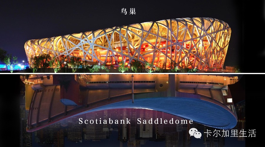 鸟巢,已经是北京的标志性建筑之一,而马鞍体育馆也是卡尔加里城市明信片出现几率极高的建筑。