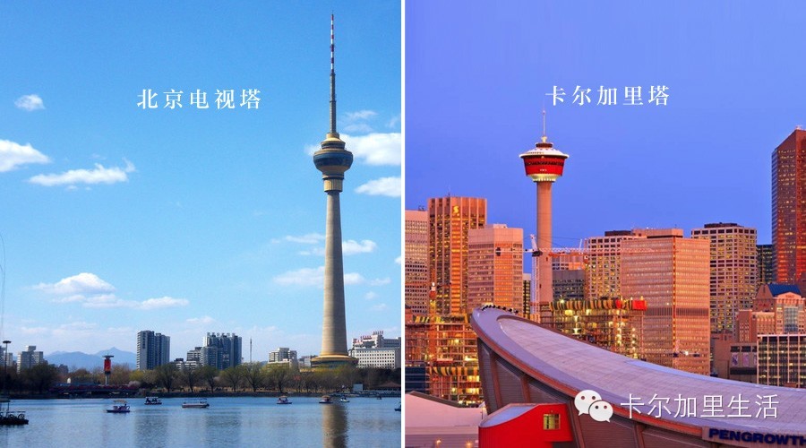 中央电视塔以前是北京城市地标之一,但是随着城市发展区域的转移,它的出境频率降低了。而卡尔加里塔由于正处市中心,虽然其风头减弱,但是凡是有卡尔加里天际线的照片,其基本出现,不知道以后是否会被淹没在摩天大楼里。