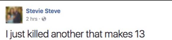 之后…他甚至在Facebook上发布了一条状态,再一次表示,自己已经杀死了13个人...