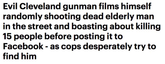 可是,就在北美网友们欢乐过节的时候,脸书上却出现了一场骇人听闻的大屠杀!一个直播杀人的变态杀人狂声称,自己在这个复活节杀了15个人!