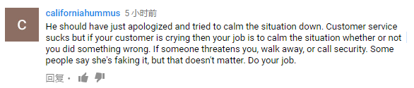 “工作人员应该道歉和平息局势,他们的客户服务太差了!有人说这位母亲也有问题,但这不是重点。”
