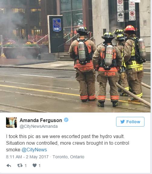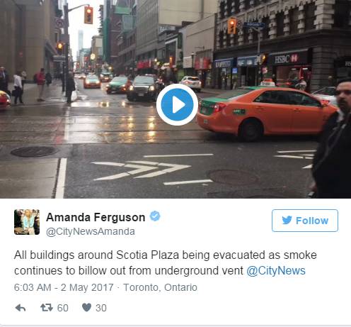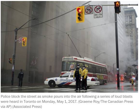 5月1日下午,多伦多市中心金融区地下突然传出爆炸声,接着,便不断有黑色浓烟冒出!