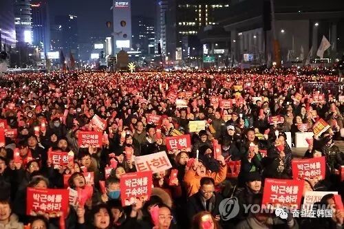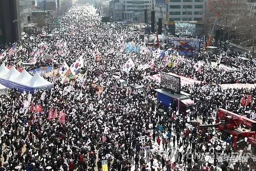 在全韩国国民示威游行、要求弹劾朴槿惠时,发动相关人士举太极旗参与“反对弹劾”示威!