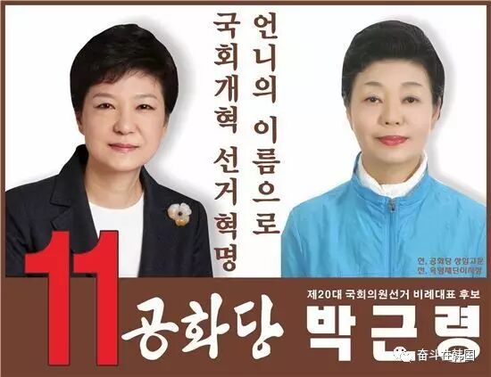 她的竞选海报上打印有朴正熙与她的照片,宣传语写着“以父亲的名义”,摆明要借助父亲的光芒吸引更多选票,但最终竞选失败。