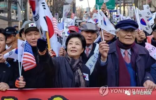 在朴槿惠弹劾案通过后,挺朴民众不服判决进行示威,朴槿令也在场示威。
