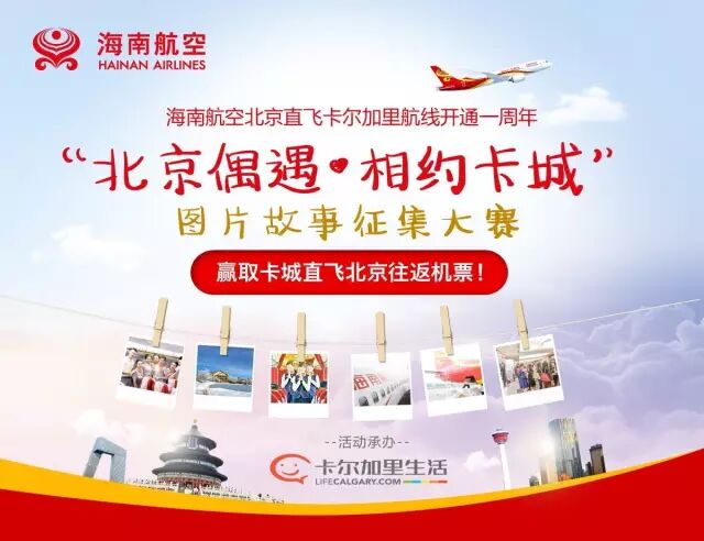 并且内容必须要和卡尔加里、北京、或海航直飞沿途风景有关!