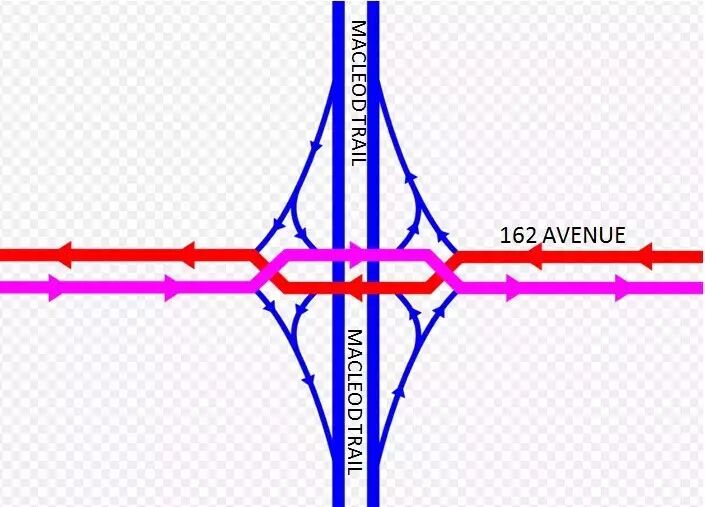 建这个大型钻石双向立交桥,主要是为了缓解卡城南部Macleod Trail上的交通堵塞情况,162 Avenue这一块,在过去20年人口增长超快,旁边建起了Shawnessy商业中心,但是交通情况却不尽如人意,所以这个立交桥将在很大程度上缓解这一块的交通拥堵。