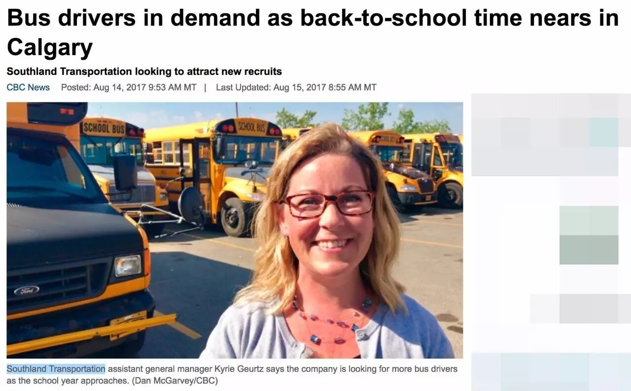 该公司总经理助理Kyrie Geurts表示,包括卡尔加里教育局在内的客户需求量增大,运输公司即将很忙碌,校车司机需求量大。