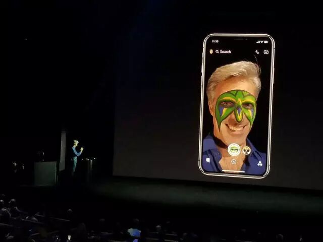 由于没有Home键,也没有指纹识别了,这次是Face ID,也就是面部识别,现场显示的Face ID的解锁速度非常快。无论用户换了发型,换眼镜、戴帽子等等,都不会影响到Face ID的认证,光线不足的情况下也不会有影响。