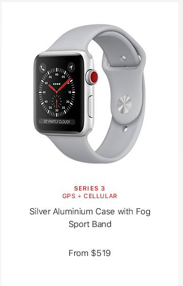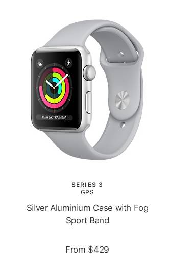 苹果手表三代标准版$329美元起,数据版$399美元起。