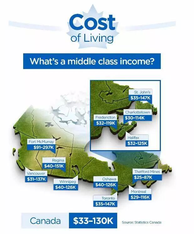 在Fort McMurray,年收入$87,000可能还不足以跻身于中产阶级,但是在魁省的Thetford Mines这已经算得上是中产阶级的高层人群了。