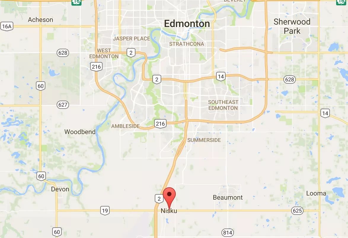 加拿大皇家骑警劳雷尔•斯科特(Laurel Scott)在新闻发布会上表示,周一上午九点四十七分接到报警电话,称埃德蒙顿尼斯库镇(Nisku)南边乡镇公路510号发生车祸,方位如下↓