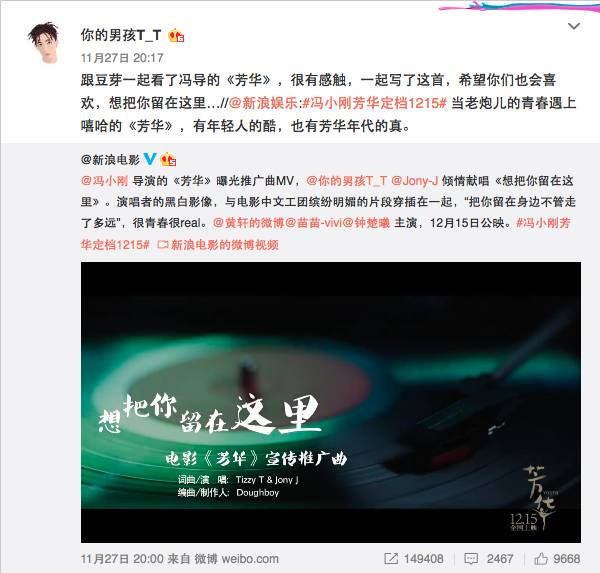 近期公布嘻哈版主题曲《想把你留在这里》也在微博引起一阵小骚动!