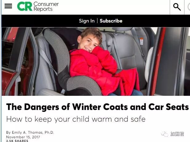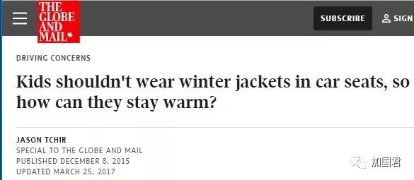 加拿大环球邮报今年三月更新的一篇报道,当时就已经称,小孩不应穿冬季外套坐在汽车安全座椅。