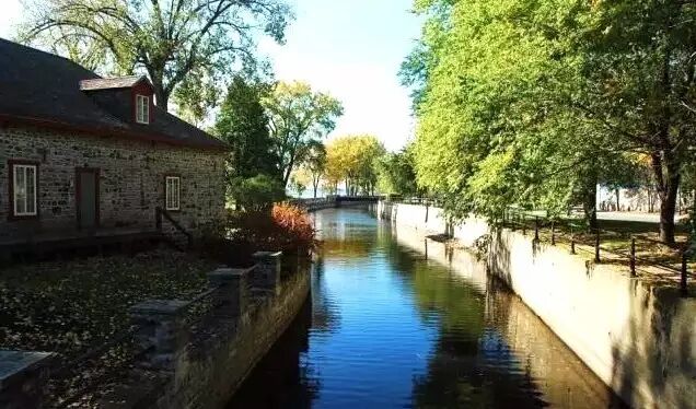 100多年后的1821年7月17日,英国人John Redpath开始修凿中国运河。1824年完工,1825年开始航运。上图左侧的石头房子是Lachine Fur Trade Museum——“中国毛皮贸易展览馆”。