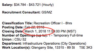 职位申请截止3月1日,就是明天!!!有兴趣的阿省小伙伴赶紧啊!