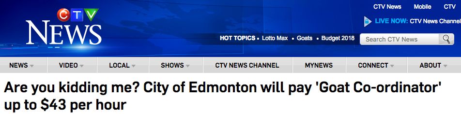 埃德蒙顿市政府正在招人,据官方发出的高薪招聘广告,诚聘“山羊协管员”(goat co-ordinator ),时薪高达$43/小时!