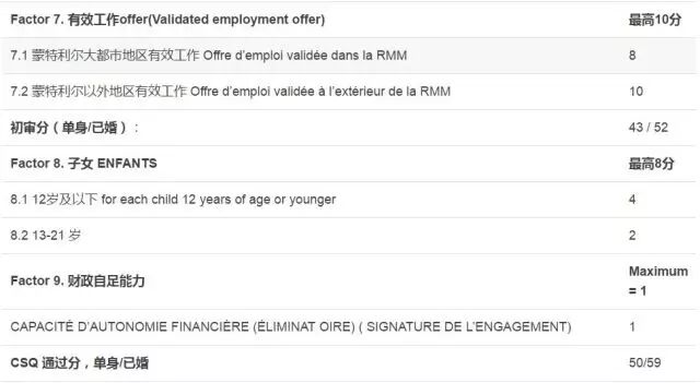 魁省有独立的移民审批体系,其移民审核标准一直被认为比联邦政府的标准宽松。魁北克技术移民不受联邦紧缺职业的限定,对申请职业没有要求。主要的打分要素包括教育、工作经历、个人的适应性、语言能力、年龄以及配偶(如果有)的教育、语言、就业安排等。此外,有小孩可加分、有魁北克居住经历可加分、在魁北克有直系亲属可加分。