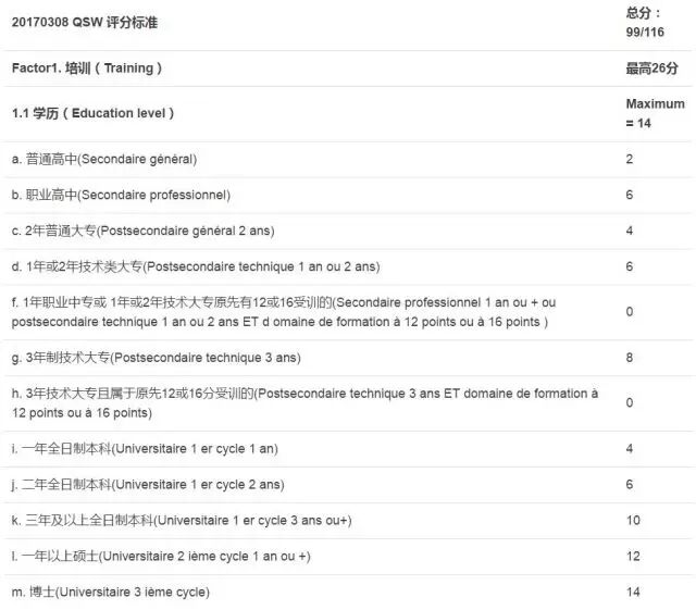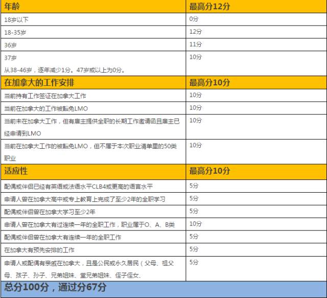 ②满足评分67分,加拿大联邦技术移民评分标准,总分是100分,通过分是67分。