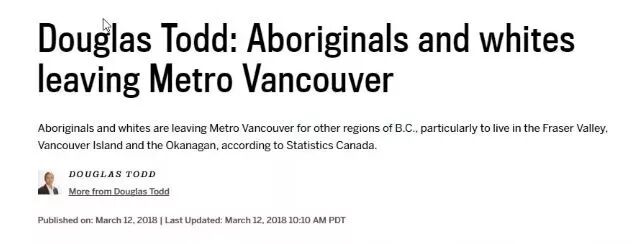 在过去一年间有9345名白人居民和460位原住民搬离了大温地区,这还是20年来首次出现这种趋势。