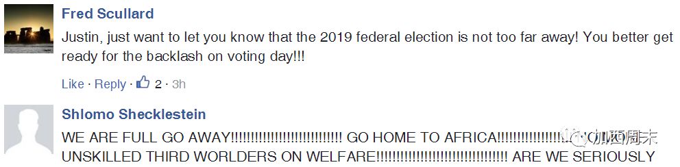 “特鲁多,就想警告你,2019联邦大选不远了,等着哭吧。”