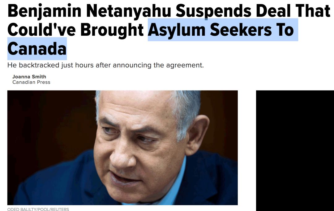 以色列总理内塔尼亚胡 (Benjamin Netanyahu)星期一 (4月2日)宣布,以色列与联合国难民署 (United Nations Refugee Agency)达成了一个协议,加拿大和欧洲国家将接纳目前在以色列的的部分非洲难民,从而取消引起争议的把难民驱逐到非洲安全第三国的计划。