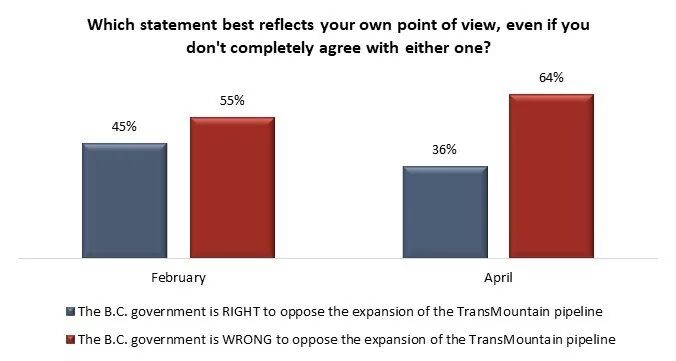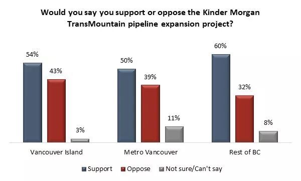 赞成油管的民众更是横跨整个省份,大温哥华区民众支持油管的比例为50%,温哥华岛的比例为54%,BC其余地区的比例更高达60%。