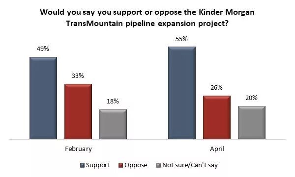 也就是说,无论是BC哪里的居民,赞成跨山油管扩建工程的都占大多数!!