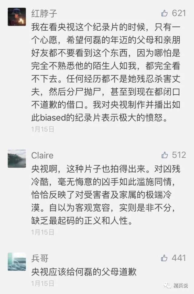而网友们感到愤怒的原因,也无非是因为这档节目会给何磊的亲属造成巨大的伤害。他们已经承受了失去亲人的痛苦,现在又要看着央视把“改造陈丹蕾”当成积极案例来大肆宣传推广,面对着没有公开认错的杀人凶手即将出狱“拥抱新生活”的现实,换作谁恐怕都无法接受。