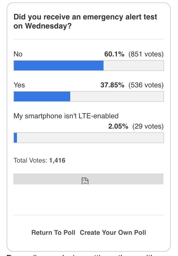 但是,根据卡尔加里先驱报的调研结果来看,没收到的人超过60%了好么,收到警报测试的被调查者不到40%。。↓