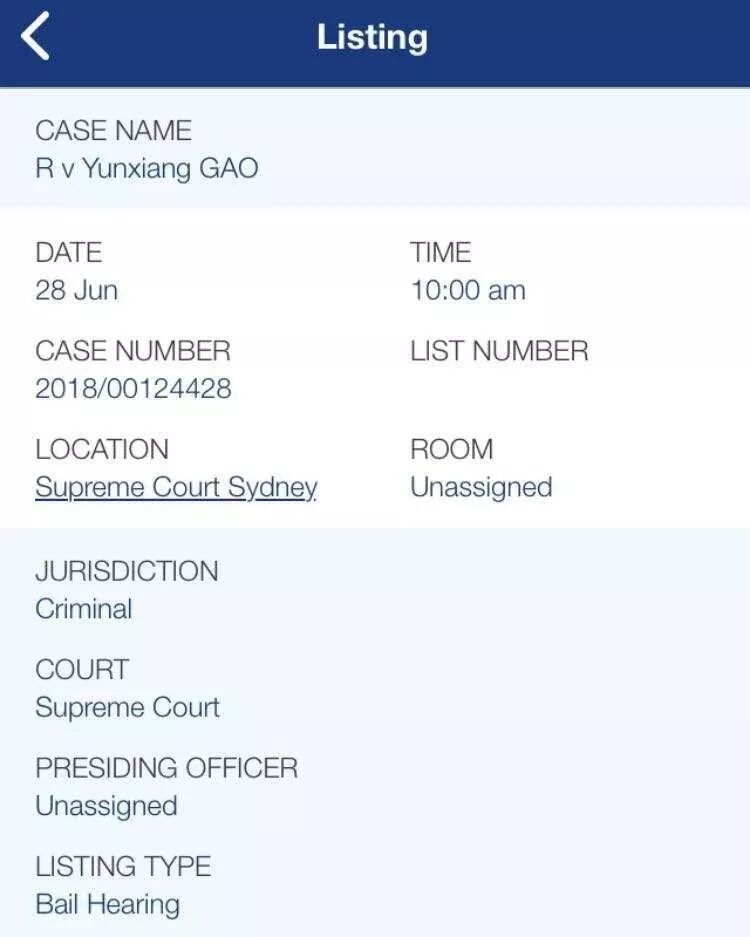 但随后,在高云翔律师的要求下,该案的保释听证临时推迟到今天中午12点后进行。