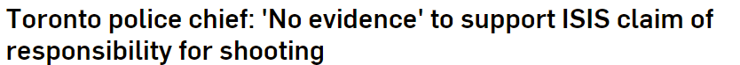 但是让人感到震惊的是,今天刚刚出来的最新新闻,ISIS伊斯兰国极端组织宣布对多伦多枪击事件负责!
