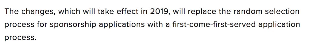 从2019年起,潜在的团聚移民担保人将在线上填写“intersst to sponsor”的团聚移民意愿的系统,来表示自己的为父母、祖父母担保移民的需求,符合要求的按照先后顺序获得申请名额。