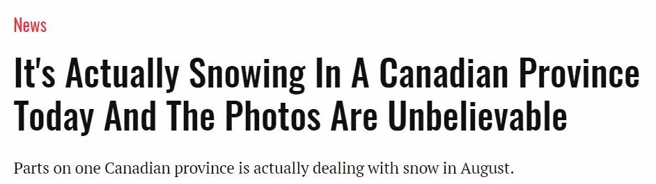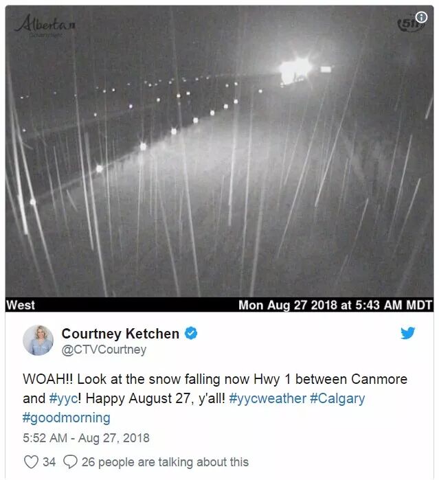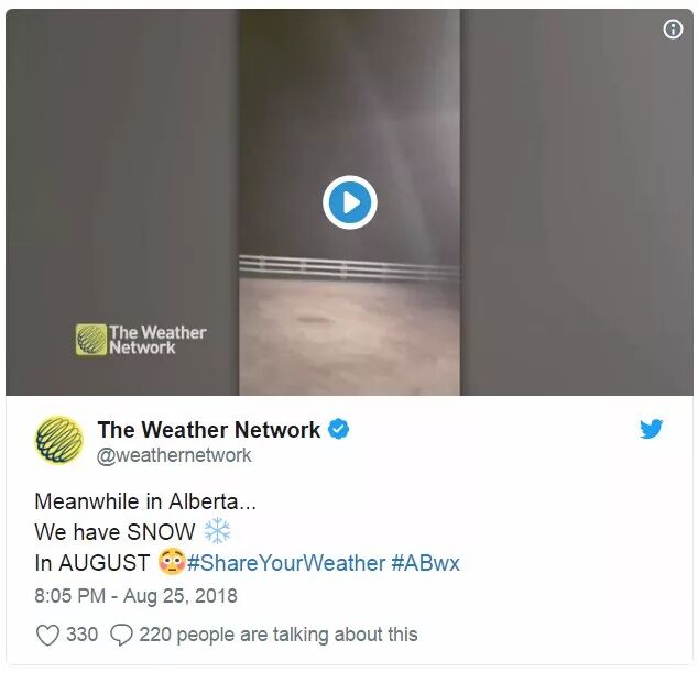 别人蒸热浪,我们赏雪景。阿省的这一波操作,也是没谁了。。这一番反向8月的骚操作,让阿尔伯塔又上了新闻头条,各地都在感叹Unbelievable!