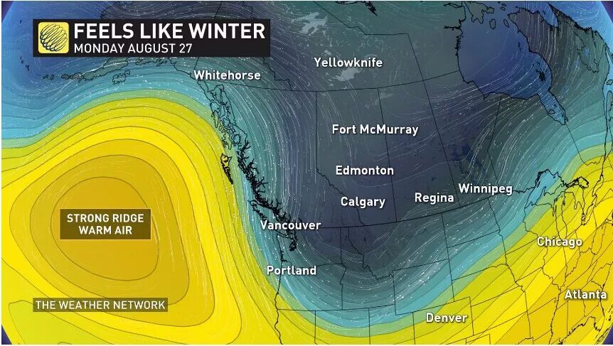 在各地一片高温热火中,我们可爱的阿尔伯塔又按耐不住寂寞了,誓要来一个“反向8月”独秀一番,体会一下独领风骚的赶脚。。。