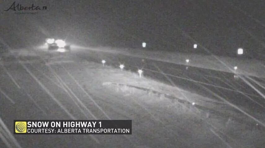 前天晚上到昨天凌晨,从卡尔加里到Canmore 之间的1号高速上也下雪了!