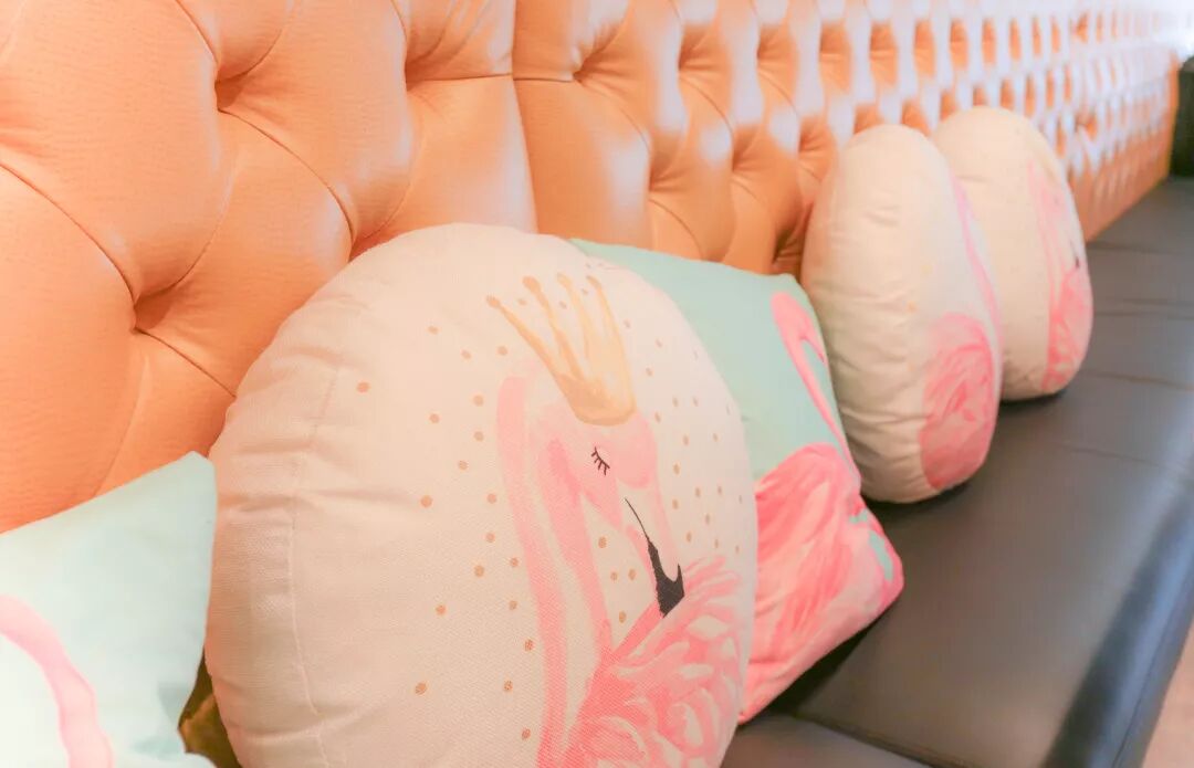 走进Sugar Lips 焕然清新少女心炸爆的感觉,看!全都是火!烈!鸟!的现代LOFT风格,而且独居创意的VI设计随处看见,马上有一种瞬间被撩倒的感觉!连W.C也具备满满PINK风,这就是我想要的网红店!!