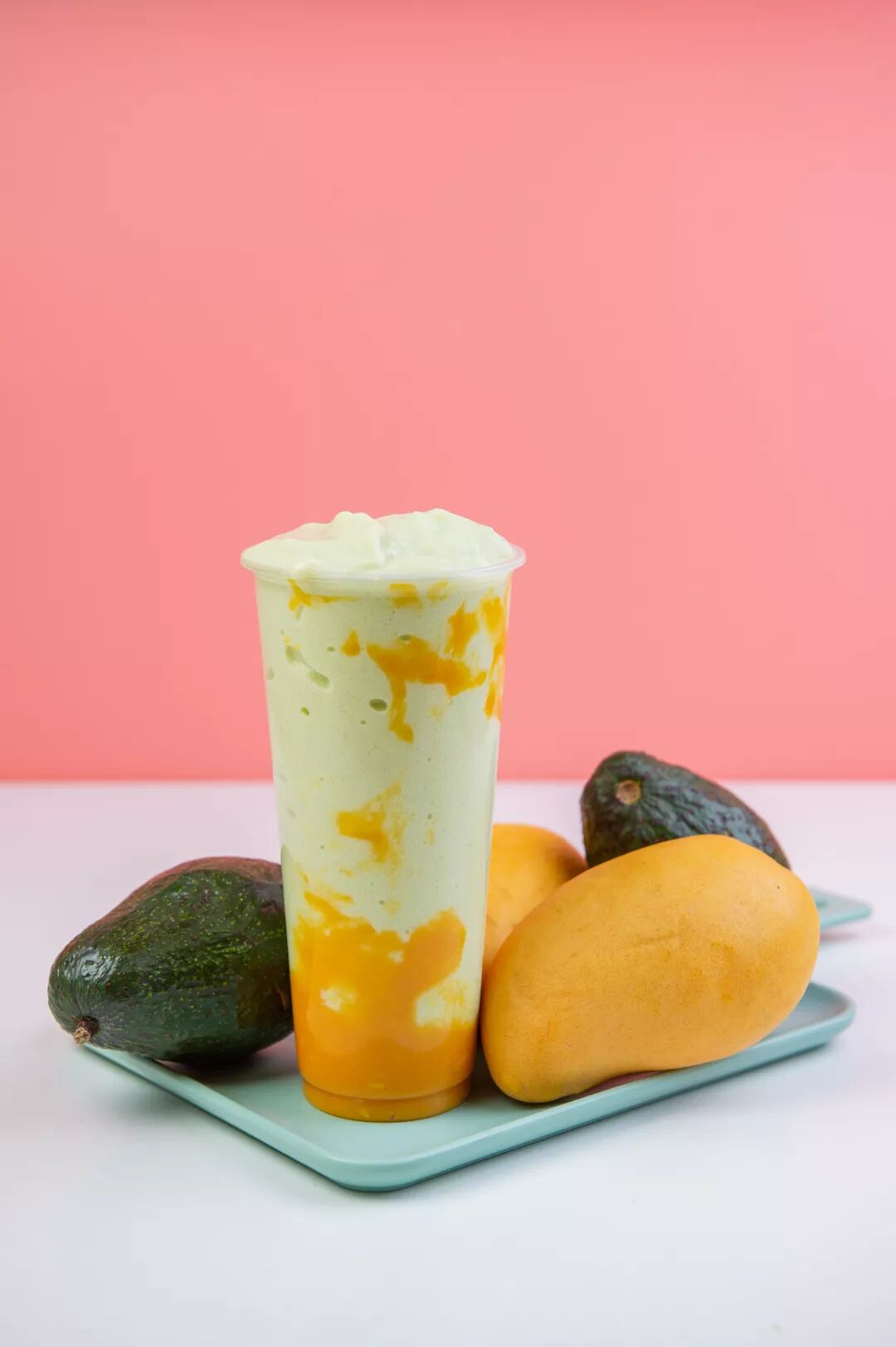 手打原只芒果肉配鲜榨牛油果汁混合一起,口感十分丰富,甜而不腻,超好喝!