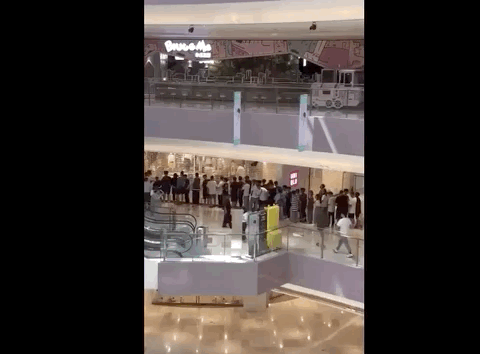 还有位大哥直接溜进了优衣库门店,住在里面了。↓↓↓