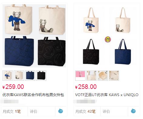 但据小编查询到的信息,这其中很有一部分人其实是黄牛党(万恶的黄牛党),某宝上随手一搜,原价99RMB的帆布包已经炒到259RMB。