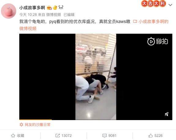 再来下现场动图,强烈感受一下,从百米冲刺到钻门,从现场扒衣到多人现场干架,场面异常激烈,话说6月3日不是周一工作日么?只能说你们对KAWS的联名款爱的深沉啊~~~