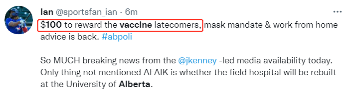 这意味着,如果你已经完全接种过两剂疫苗,那么就和这100加元无缘了。是的,你没看错,将打疫苗拖到最后的人,才有资格获得奖励。省长要么不现身,现身后就是一波神操作,难怪网友们都气炸了!大部分人都表示太不公平了!