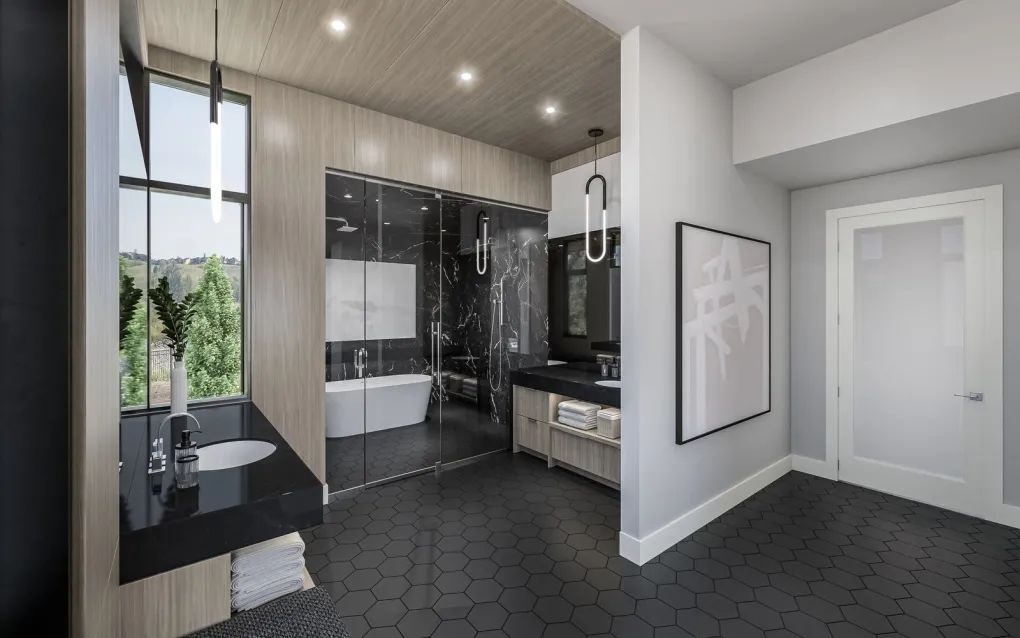 和现代套间浴室。