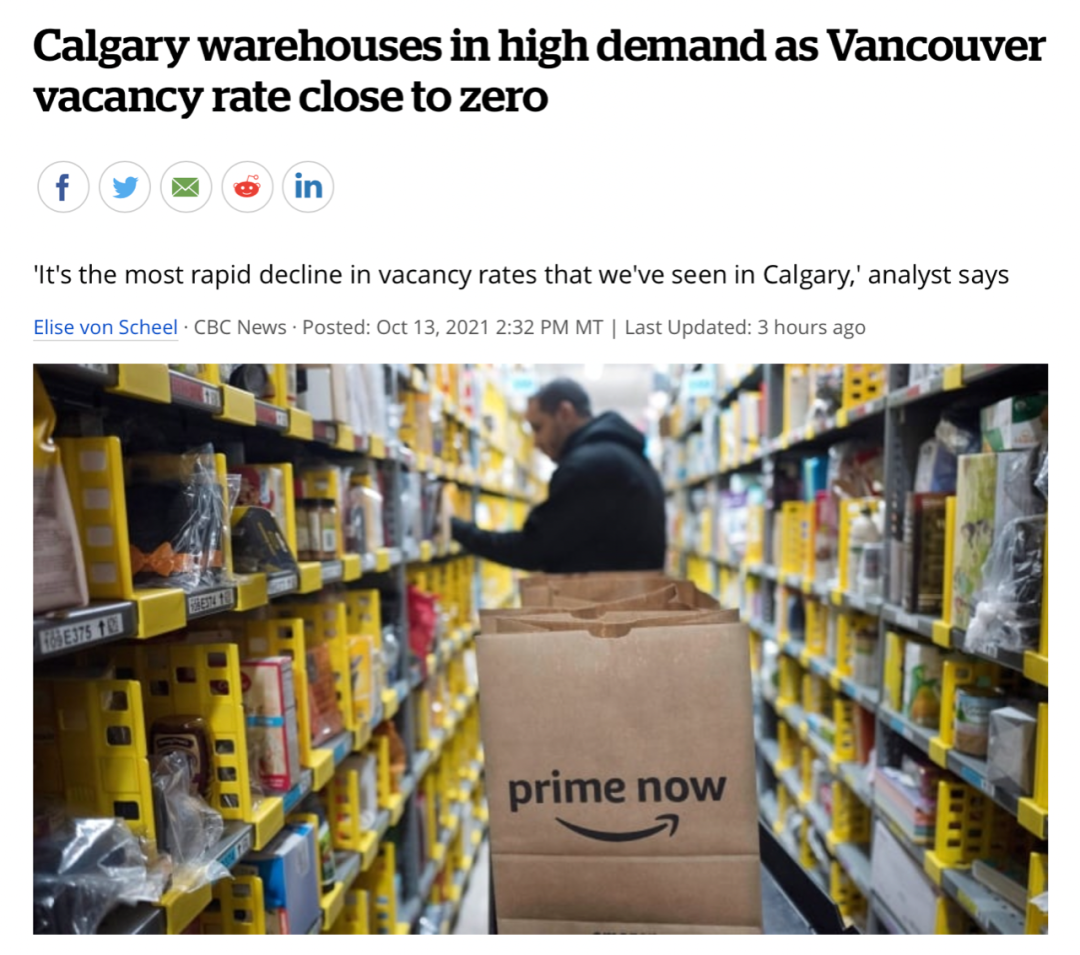 根据Colliers机构最新出的工业地产报告,卡尔加里及周边区域的仓储、物流分销等工业厂房已经越来越火爆了,工业地产空置率降到了5%,是过往十几年来工业地产空置率下降最快的一年!