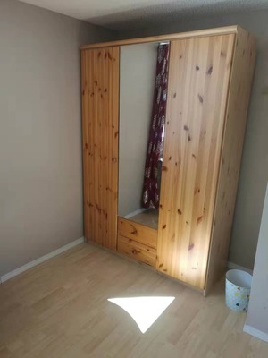 超大平层独立屋半地下房间(1.5米高窗,见图),阳光,温暖,整洁,家具齐全,(木床,书桌,台灯,办公座椅,床头柜,超大衣柜带穿衣镜),安静,单独出入。