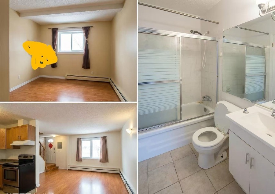 三个房间的townhouse 出租(两大房,一小房),地址 3809 45 st sw. 带家具,1750 包水电气网.