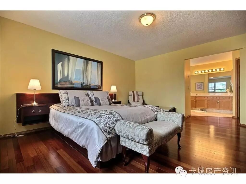 3个卧室都是大卧房,尤其是主卧,端庄大气非常开阔。房子建于1991年,年代不算新,但是房子保养维护得特别好,新屋顶还是2014年换过,屋内地面除了地下室基本全是实木地板,壁炉是紧俏的烧木壁炉,厨房也经重新装修升级过。
