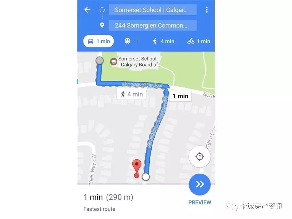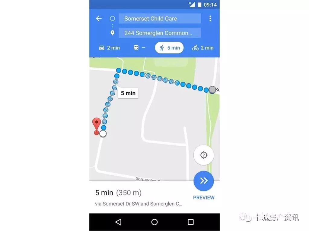 房子地理位置截图,离托儿所Daycare 步行距离5分钟,离学校步行距离1分钟: