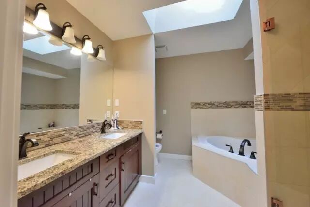 洗手间装修档次不错,天井式设计,躺在浴缸就能享受“阳光明媚”~